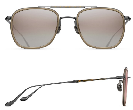The M3081 is a classic rectangular sunglass crafted of lightweight titanium and featuring a thin acetate insert.